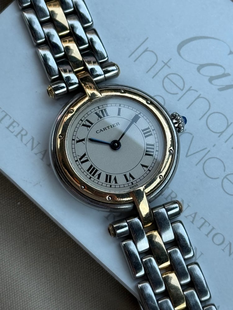 Montre vendue avec pochette Cartier et papiers de révision Cartier.